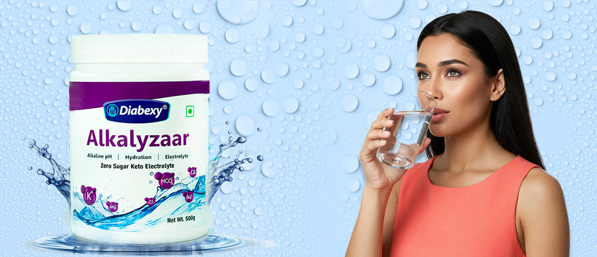 Diabetes often makes the skin dry, rough, and itchy due to dehydration. Diabexy Alkalyzaar Alkaline Water has a lower osmolarity than blood, which helps your body to absorb electrolytes faster so that you get better hydration at the cellular level. This helps in reducing fine lines and dullness, and improves overall appearance of skin. Whether you are diabetic, a fitness enthusiast, or simply health-conscious, Alkalyzaar helps you stay properly hydrated throughout the day.